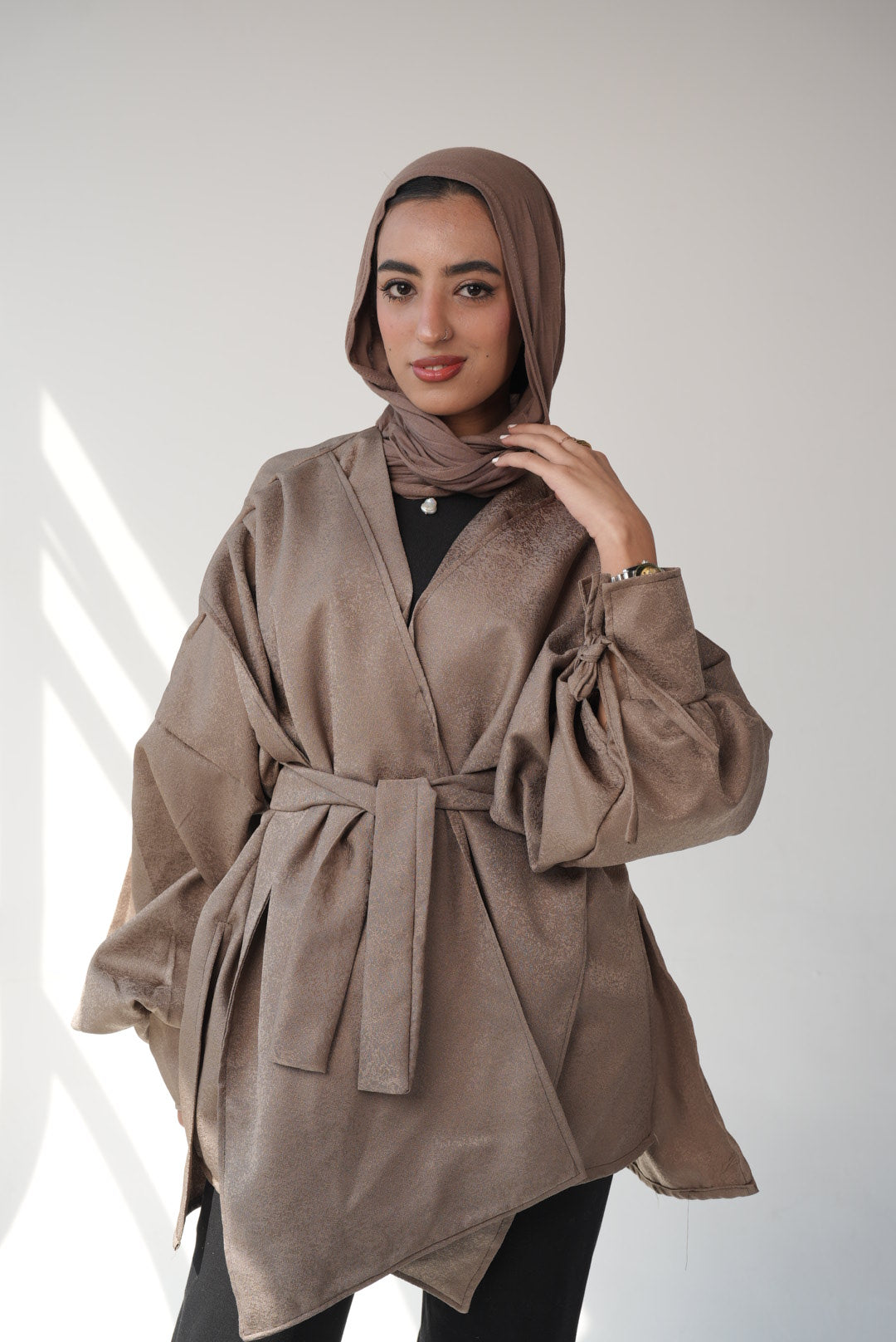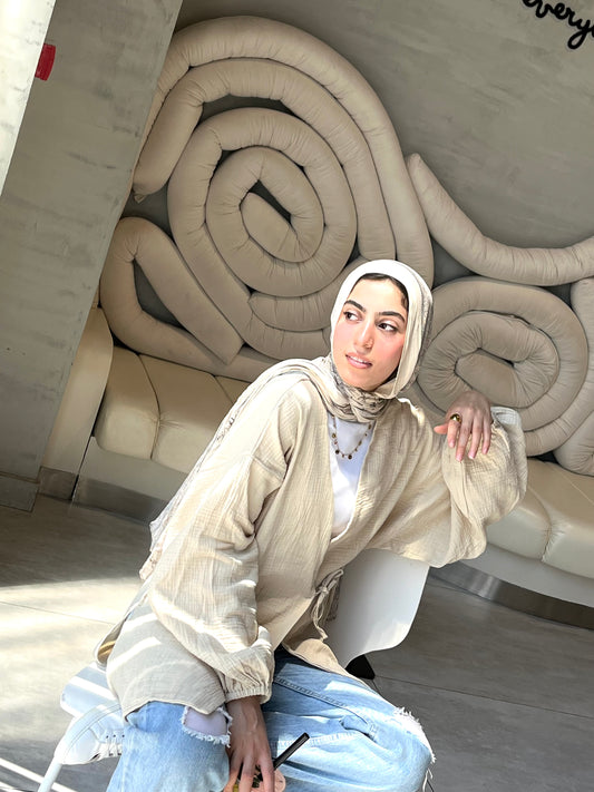 “Grace in every layer ✨ This open-front elegance jacket is the perfect blend of modesty and modern sophistication. Effortlessly chic for any occasion! 💫